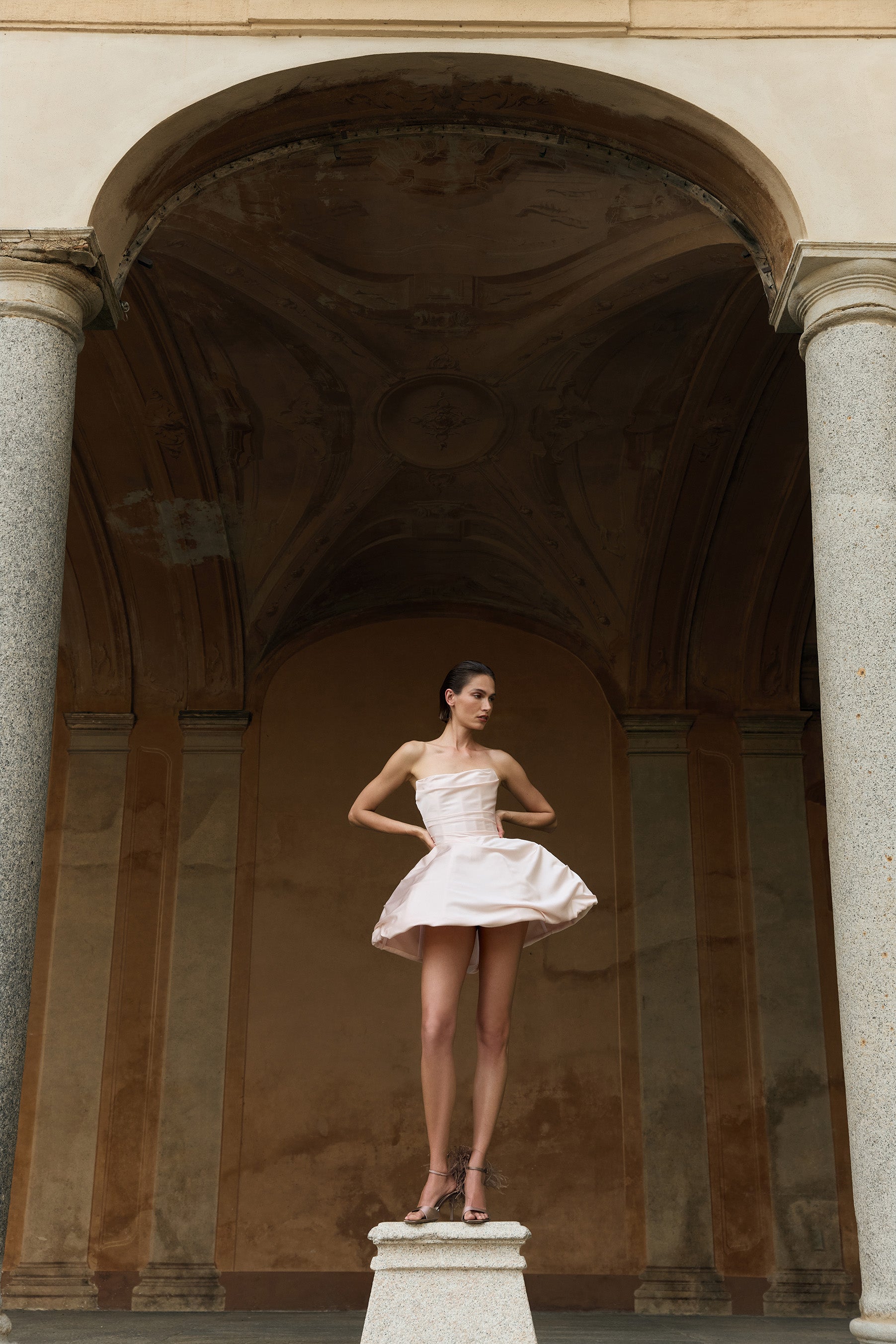 The Resort 2025 palette is as gentle as the first rays of sun on the skin: milky white, silver, beige, pastel shades of pink and gold — all tones that evoke light, warmth, and the intimacy of touch.
