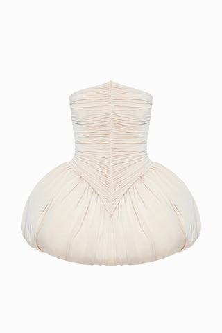 Clara dress in burgundy combines sophistication with a modern twist. The strapless design features delicate ruching across the bodice, accentuating the waist and creating a structured yet feminine look. The voluminous skirt, gathered at the waist, adds a playful and dramatic flair. The soft, burgundy fabric drapes beautifully, making it perfect for elegant evening events or special occasions where you want to stand out in timeless style.