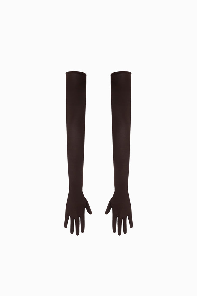 Unique and stylish, these long mesh gloves in brown bring a modern twist to classic elegance. The sheer fabric adds a delicate and airy feel, while the earthy brown color makes them a versatile accessory for both formal and contemporary looks. Perfect for standing out with subtle charm.