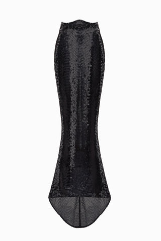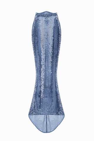 An elegant long sequin skirt that gently highlights the silhouette and creates a refined line. The shimmering fabric adds a festive touch, while the floor length makes the look more sophisticated. Perfectly pairs with a bustier top or classic blouses.