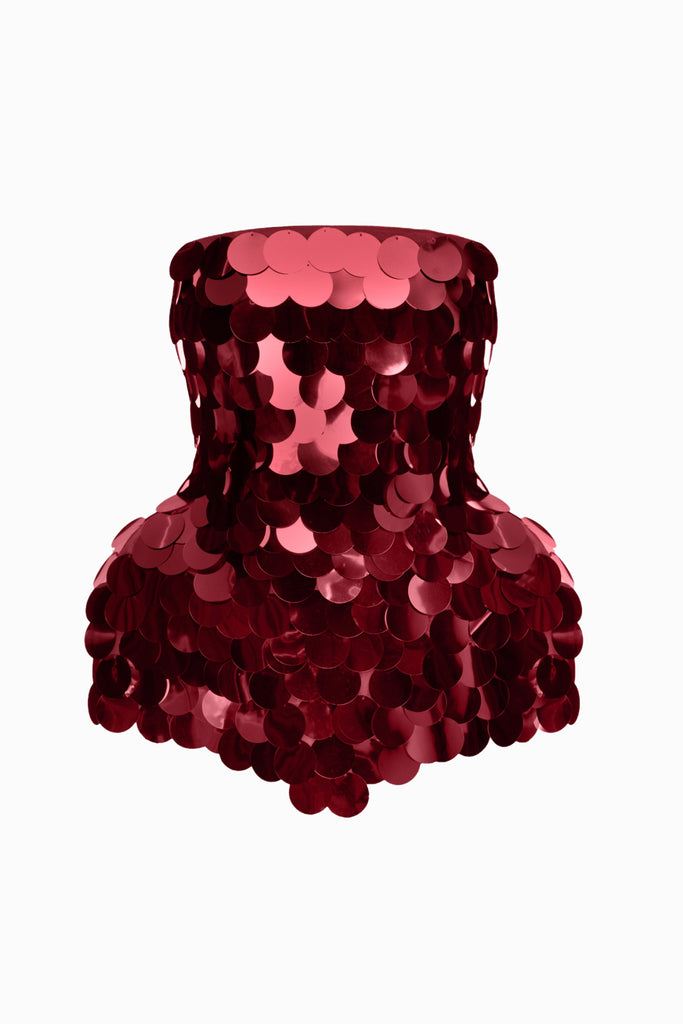Sequined maxi skirt in burgundy is a statement piece that exudes glamour and elegance. Covered in shimmering burgundy sequins, the skirt captures and reflects light, creating a dazzling effect with every movement. The sleek, figure-hugging fit emphasizes the silhouette, while the floor-length design adds a touch of sophistication. Ideal for evening events or special occasions.