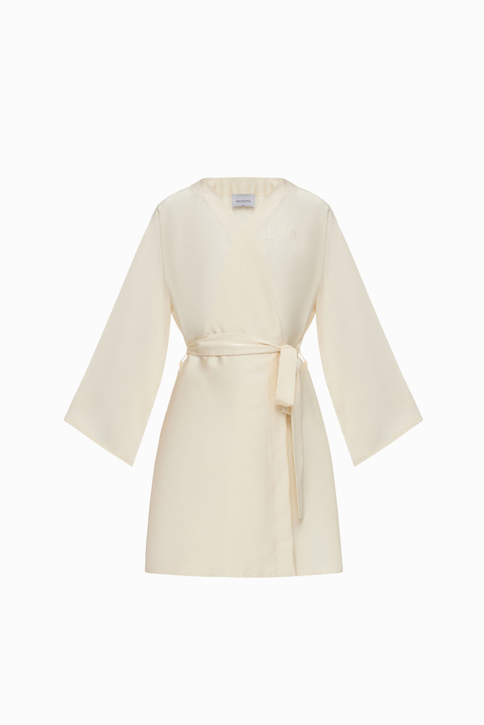 Вишуканий довгий халат, який можна носити як весільний, так і домашній. Чіткі лінії та високоякісна робота додають елегантності будь-якій події. Облягаючий крій, універсальний стиль, незамінний предмет одягу.